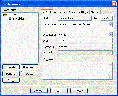 - din cauza evolutiilor relativ recente (furtul parolelor FTP prin sniffing si/sau virusi de tip trojan) singurul mod recomandat de incarcare a site-ului este cel securizat SFTP; in acest sens aveti nevoie ca portul 22666 sa fie deschis din firewall-ul si/sau conexiunea dumneavoastra la Internet;