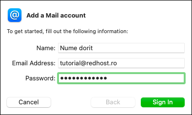 Dupa ce ati creat adresa Dvs de mail in cPanel o puteti configura pe device-urile Dvs cu MacOS. Nu configurati device-ul inainte de a crea adresa de mail in cPanel (daca nu este deja creata).
