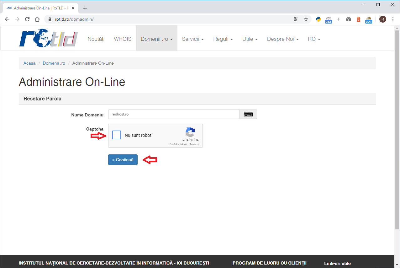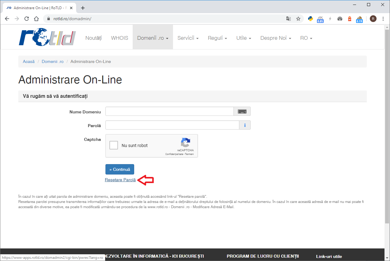 - - tutorialul porneste de la presupunerea ca nu va cunoasteti parola de la ROTLD dar ca aveti acces la adresa de mail asociata domeniului la ROTLD